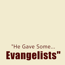 This was a good move in some ways, and the Lord has blessed it. But one thing is lacking in it—the traditional role of the evangelist. The apostolic church, and the other groups listed above, did not normally combine the work of an evangelist with the work of a pastor, as we do. Rather, they viewed the evangelist as a full time missionary. The pastor looked after the local congregation, while the evangelists used their time and talents to establish new congregations.